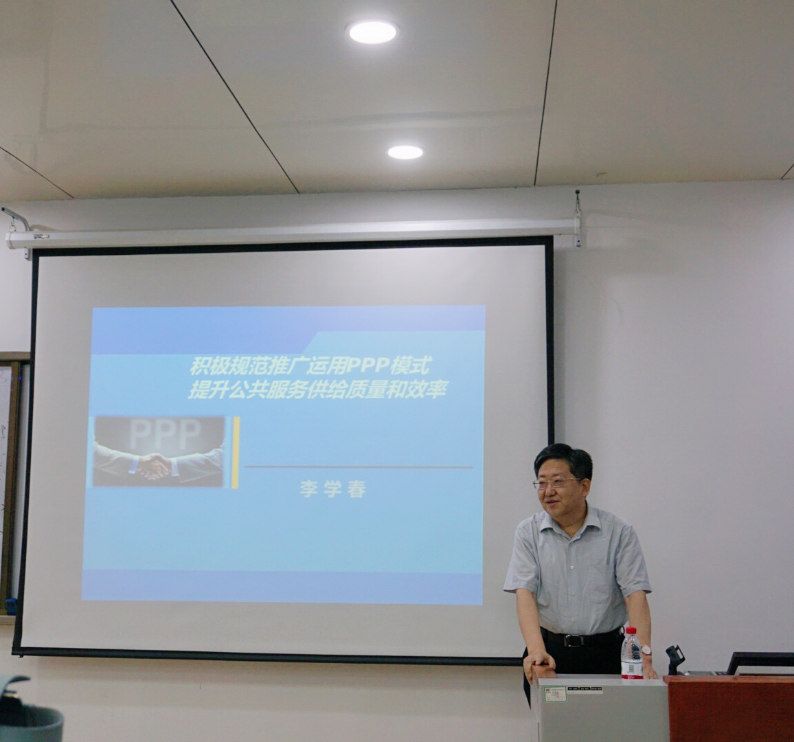 6月31日,山东省财政厅巡视员、我校兼职教授、研究生导师李学春博士,应我院邀请在我校燕山校区学景大酒店报告厅作了题为“积极规范推广运用PPP模式 提升公共服务供给质量和效率”的专题报告。