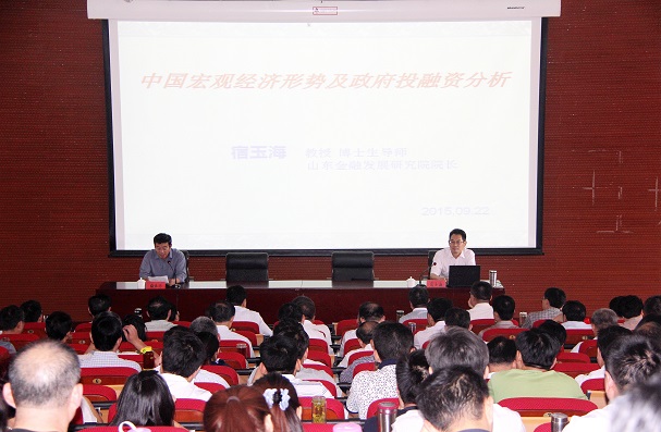 9月22日,应山东省委组织部干部教育处和泰安市委组织部邀请,我院院长、省委组织部名师送教专家组成员、博士生导师宿玉海教授在泰安市委党校作了题为《中国宏观经济政策与政府投融资分析》的专题报告。泰安市县处级领导干部及部分科级干部300余人聆听了报告,泰安市委党校副校长梅长冬教授主持了报告会。