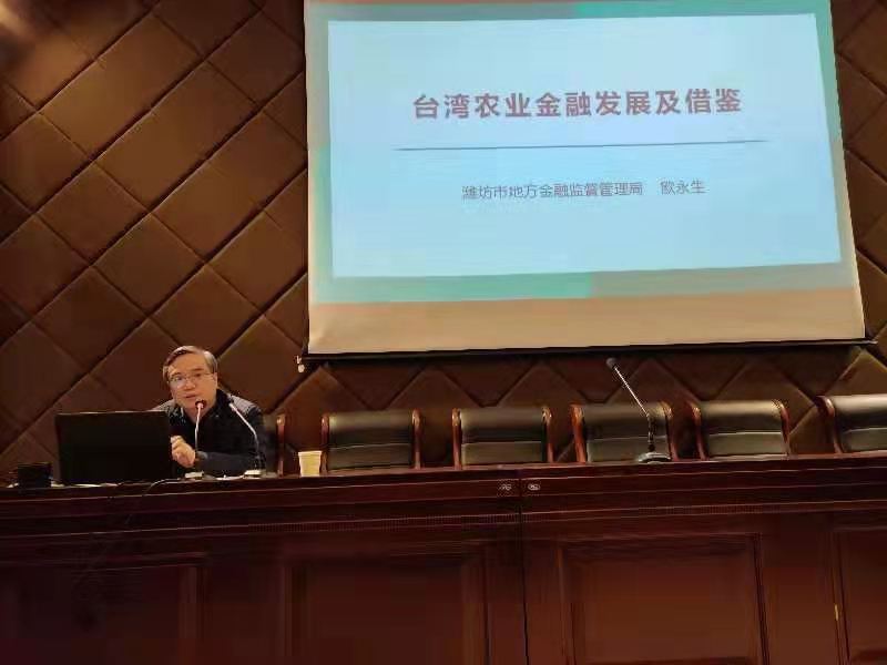 11月30日,潍坊市地方金融监督局副局长、山东财经大学研究生合作导师欧永生博士,应邀来我校作了题为《台湾农业金融发展及借鉴》的学术报告。我校七十余名师生出席了报告会,报告会由我院院长、博士生导师宿玉海教授主持。